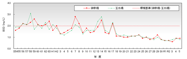 宇治川のBOD(75%値)の推移 |