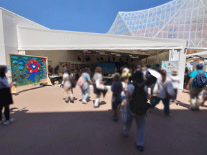 | 多くの来場者の方が、関西パビリオン多目的エリアに足を 運んでくださいました。 |