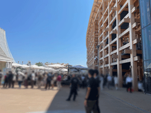雲ひとつない晴天のもと、大屋根リングのすぐそばにある関西パビリオン多目的エリアが私たちの舞台。
